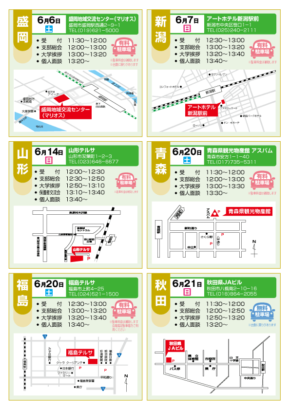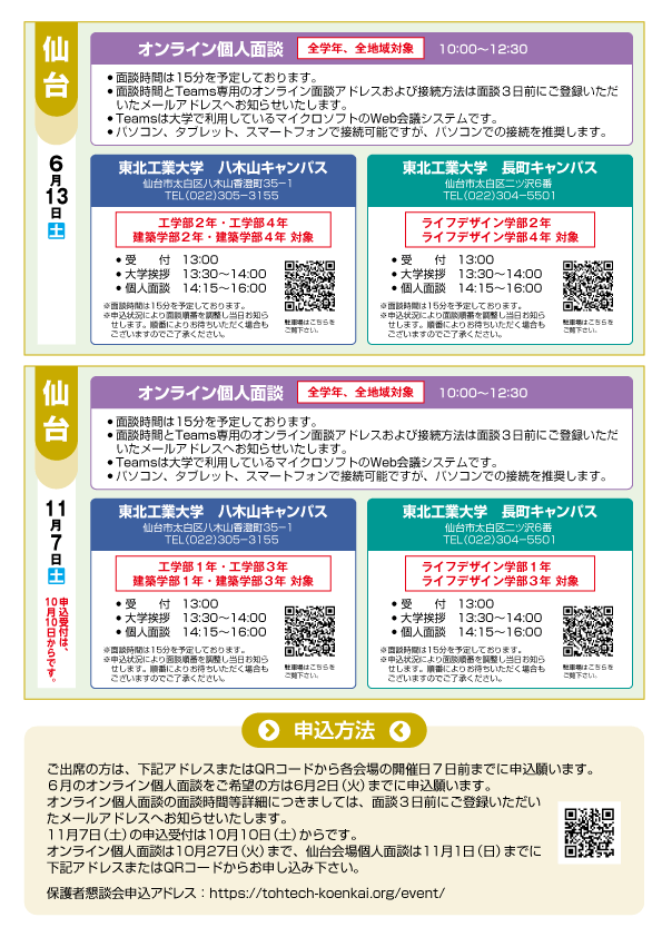各会場開催日の7日前、6月オンライン面談は 6月2日までにお申し込みください。